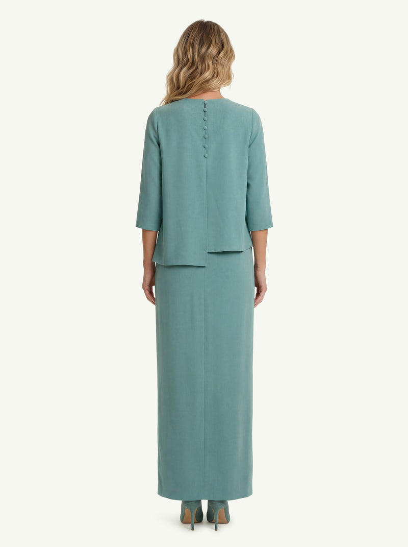 La silhouette è pensata per enfatizzare la figura femminile con linee pulite e una presenza elegante. La potenza dello stile Moncho Heredia si esprime in un abito che parla da solo, ma resta facilmente abbinabile a ogni occasione grazie alla sua cifra sofisticata e discreta.