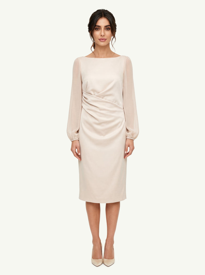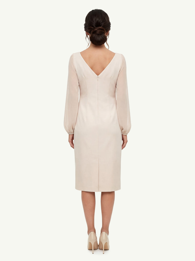 Benefici concreti: grazie al mix di cady e georgette, l’abito scorre sul corpo offrendo libertà di movimento, una linea pulita e una presenza elegante in ogni contesto. È una soluzione versatile che semplifica la gestione del guardaroba: un solo abito, infinite possibilità di styling per diverse occasioni.