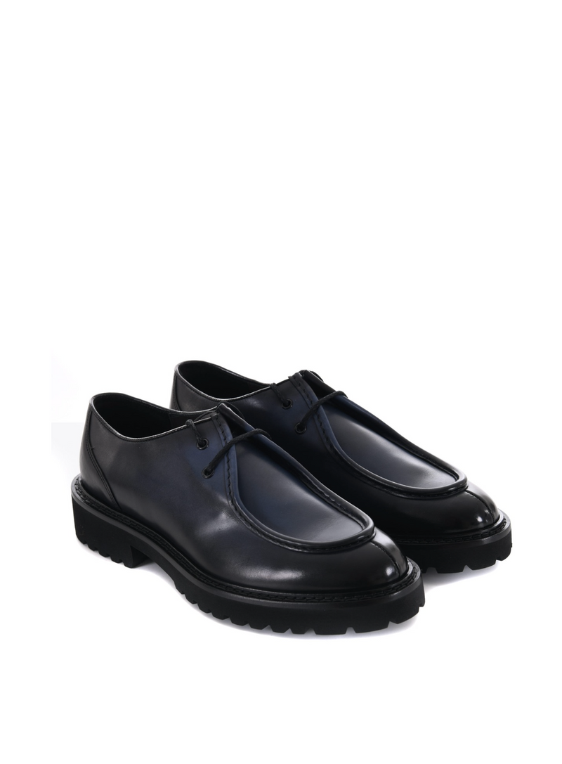 Scarpe Doucal's in pelle NERO. Effetto tamponato. Stringhe cerate. Profilo a rilievo sulla tomaia. Fondo carrarmato 40 mm in gomma.