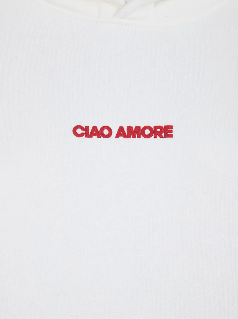 Boyfriend fit hoodie con stampa a contrasto "Ciao Amore It's A Mess" puffy front and back.