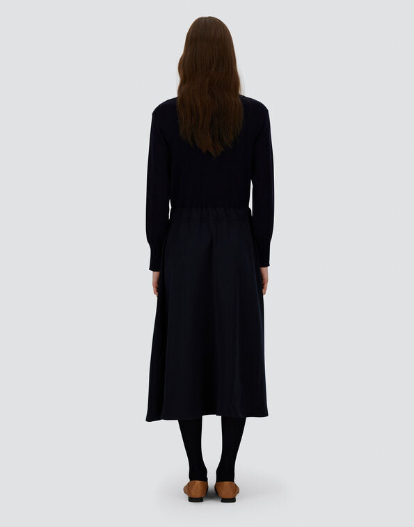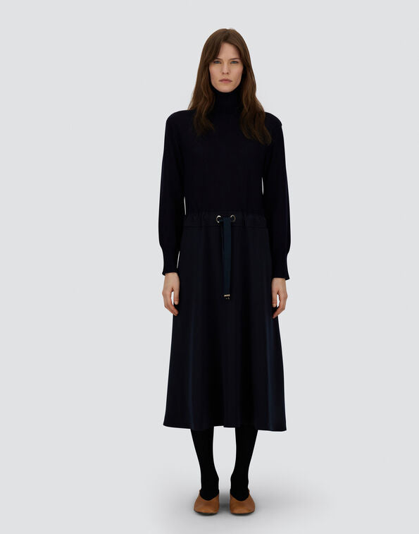 Abito in maglia rasata in finezza 14 ottenuta con filato di 100% lana vergine. Il tessuto in maglia ha un aspetto semplice ed elegante ma caldo e confortevole.
