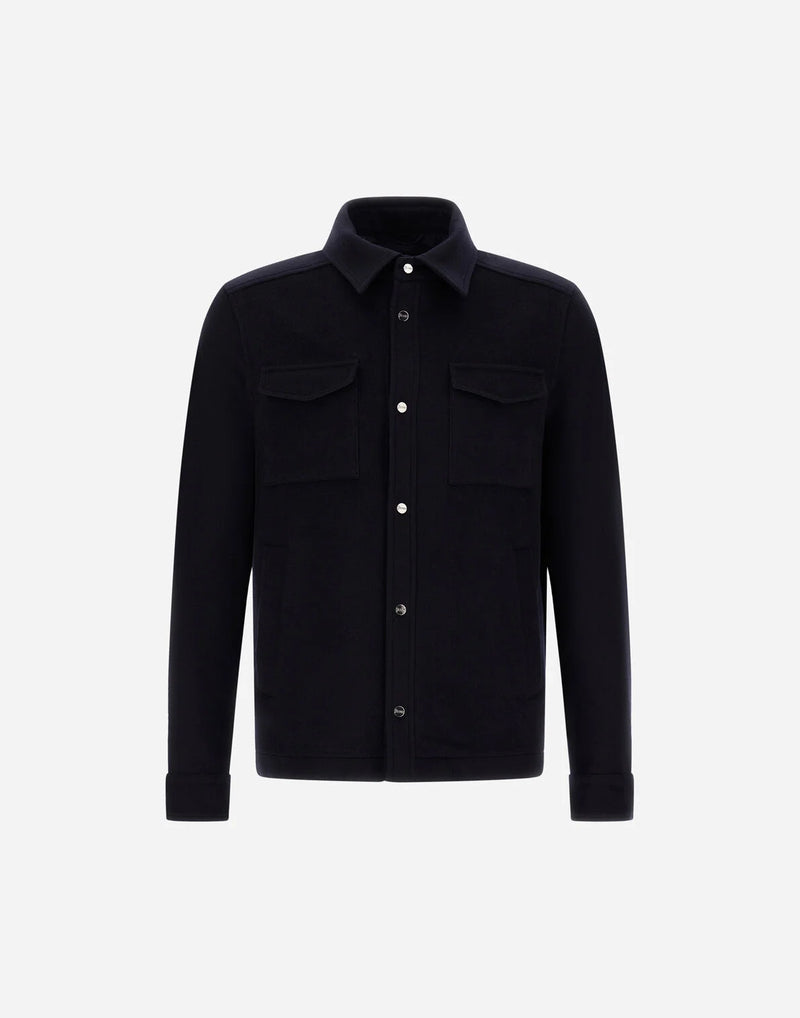 Camicia in tessuto di lana e cashmere garzato dalla mano morbida e dall'aspetto opaco.