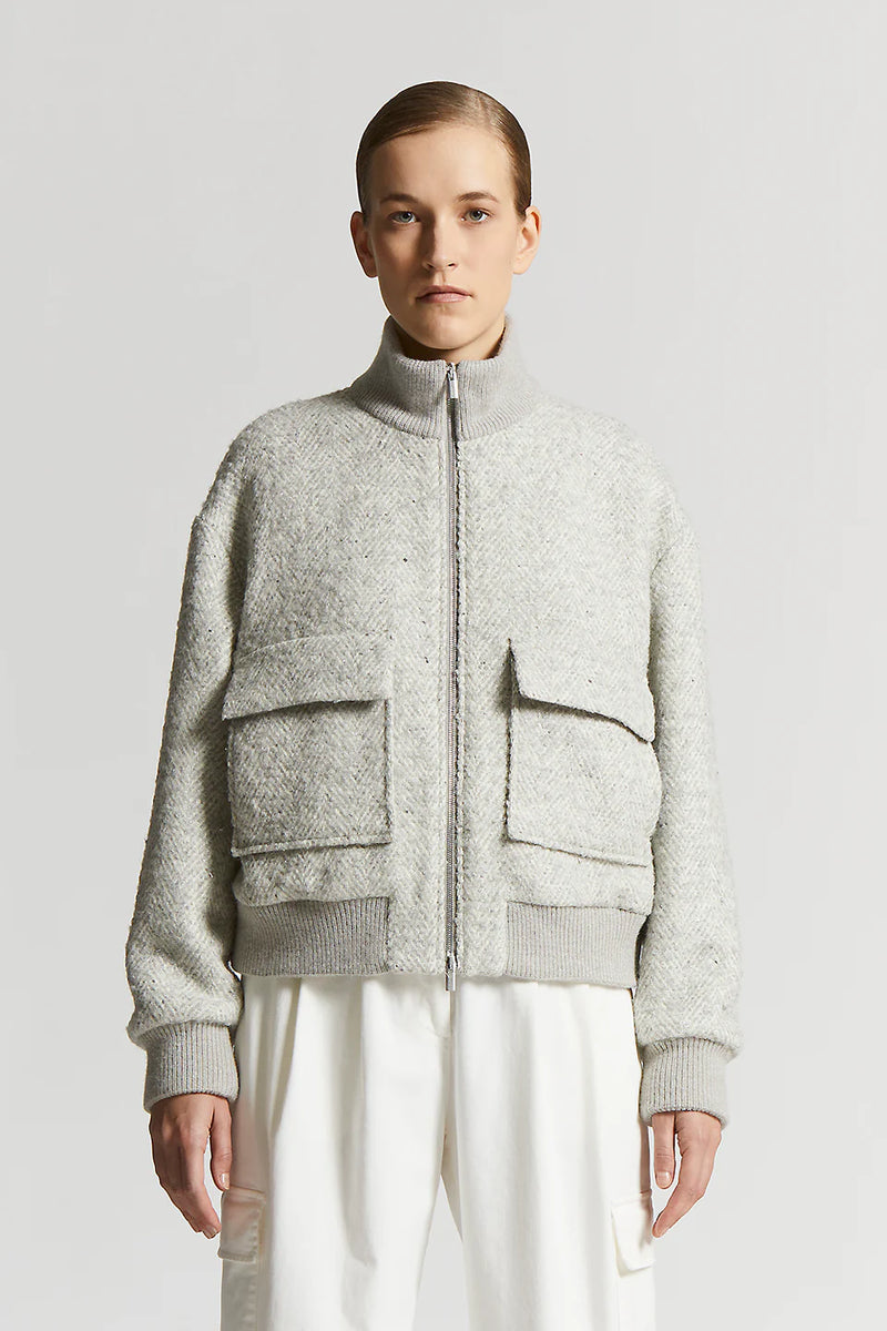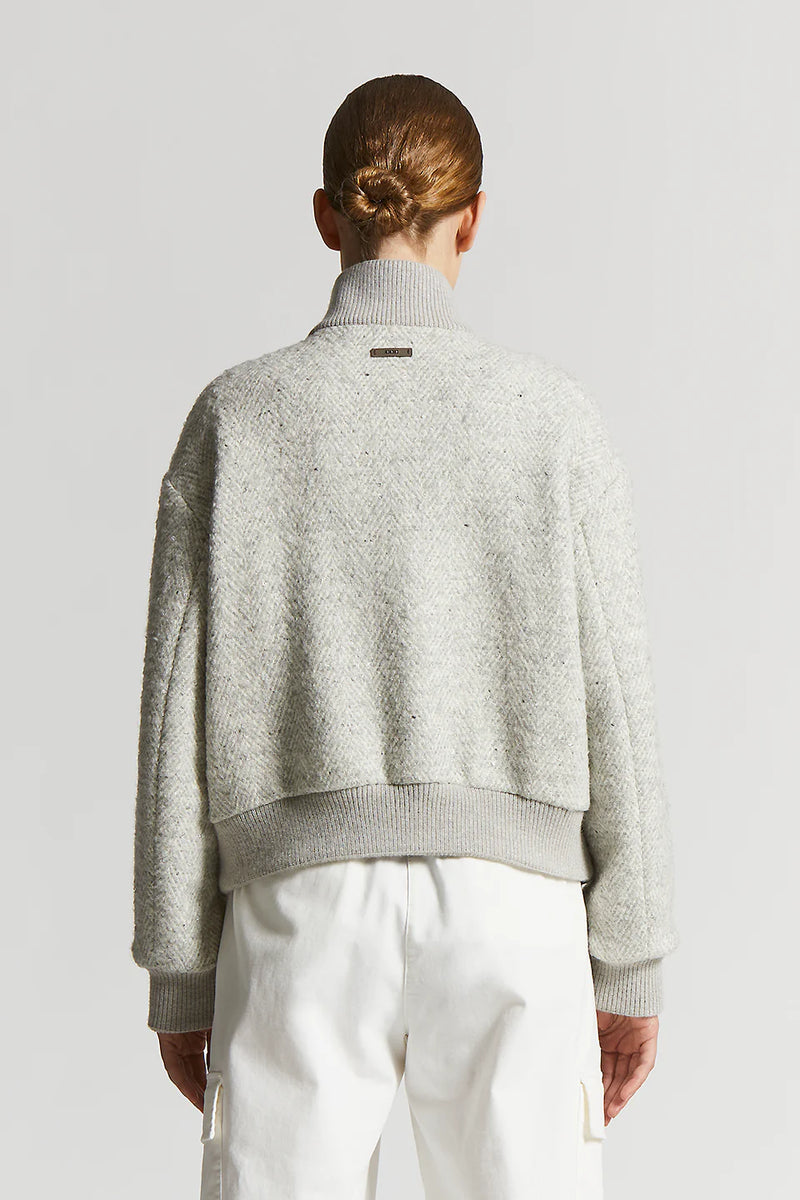 Questo giubbino riunisce in un solo capo la lussuosità del filato pregiato di lana e alpaca bottonata lurex, con la resca a spina di pesce dal sapore retrò.