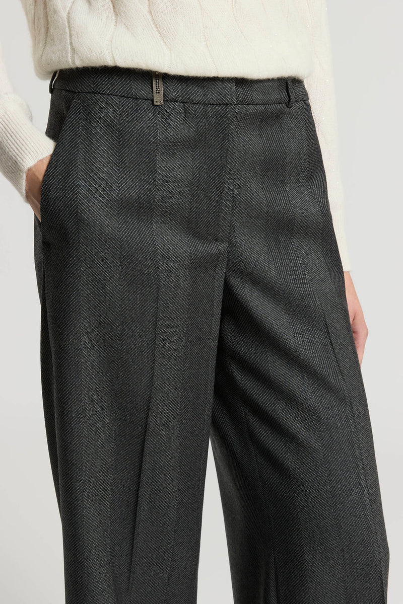 Questo pantalone offre una vestibilità comoda e contemporanea, un perfetto incontro tra comfort e stile sartoriale.